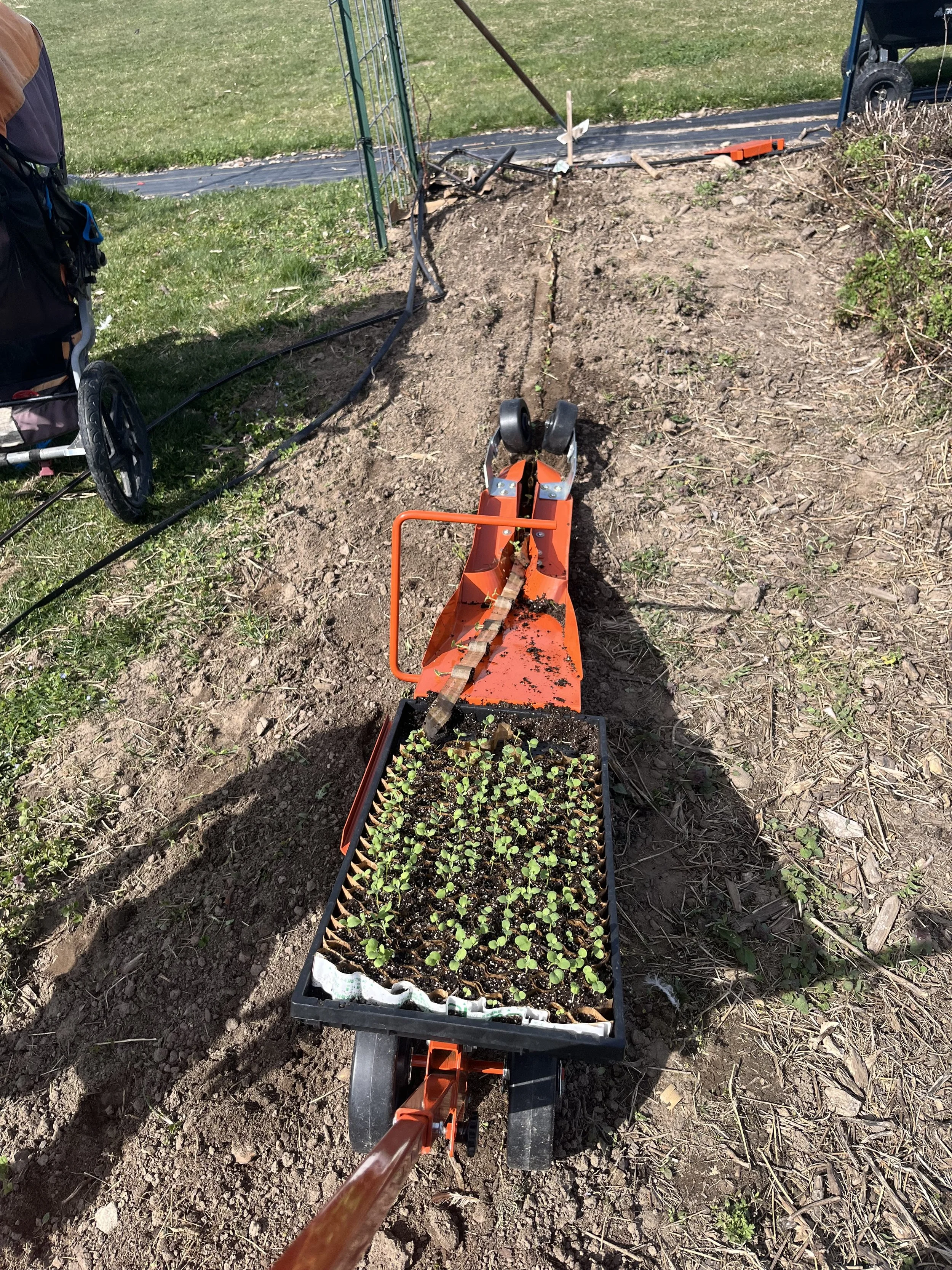 At six and seven months pregnant, I found myself thinking, “There has got to be a better way.” So I started researching. I looked at direct seeders like the Jang Seeder and plug transplanting systems. Eventually, I landed on the Paper Pot Transplanter.