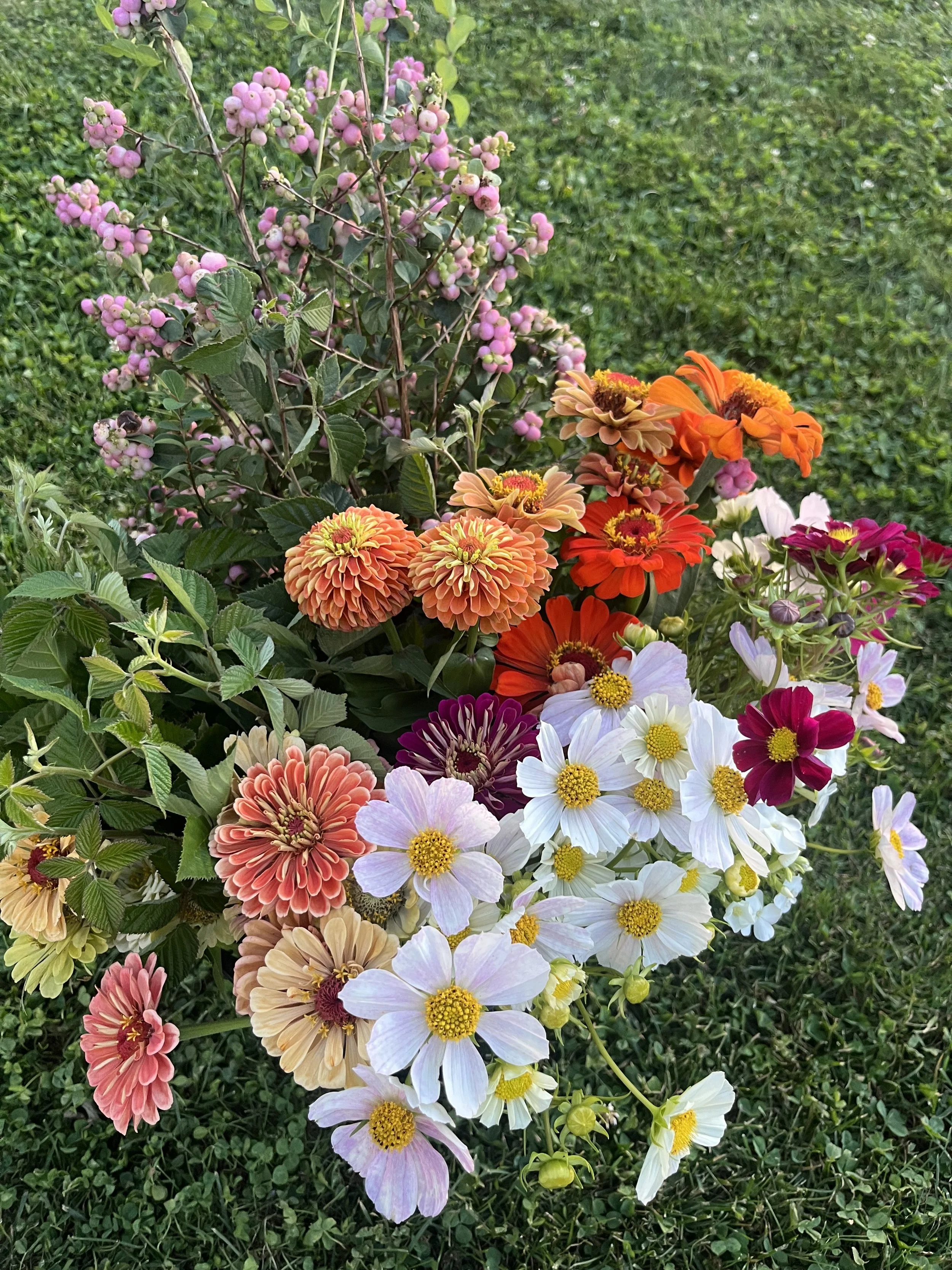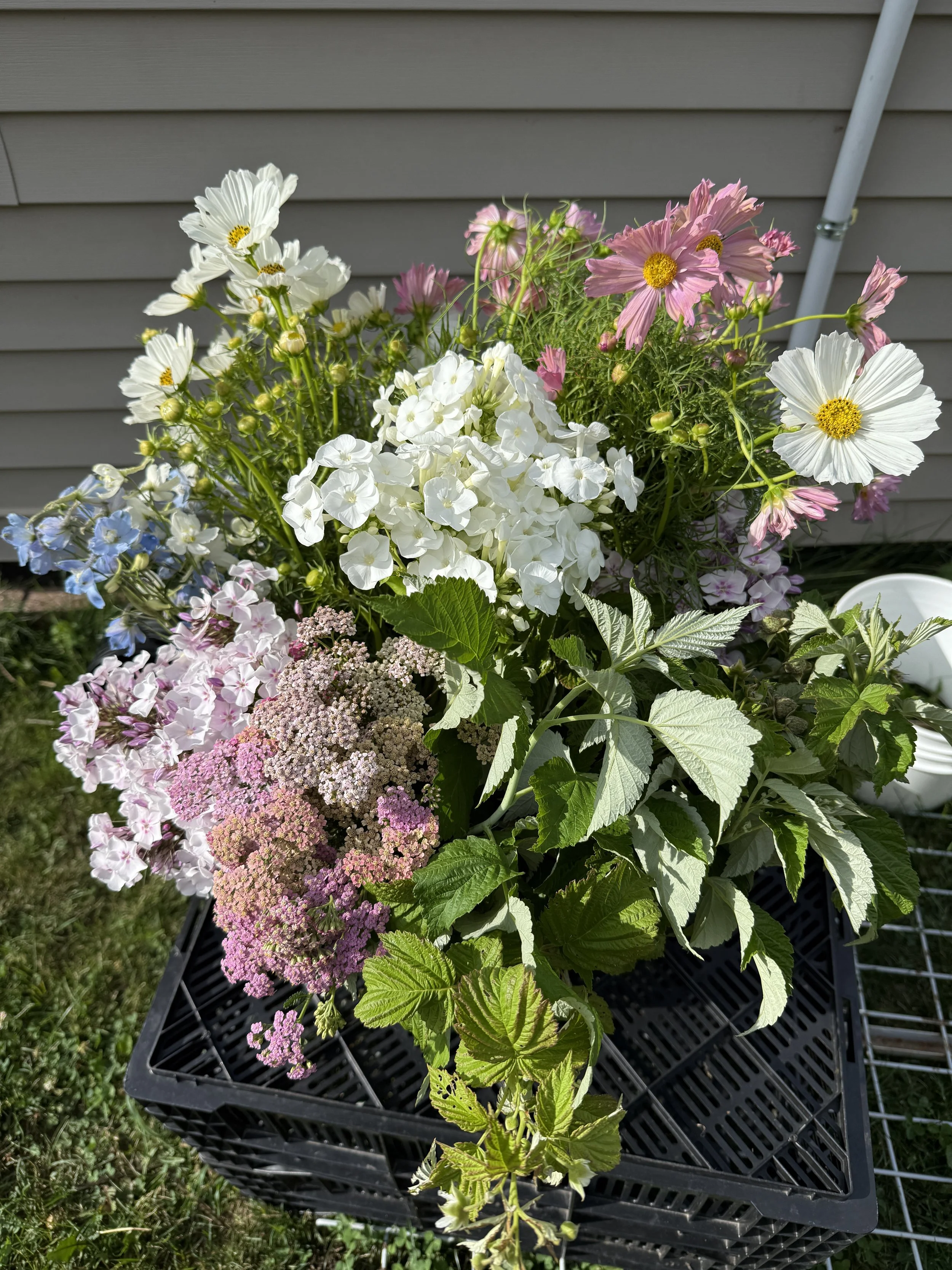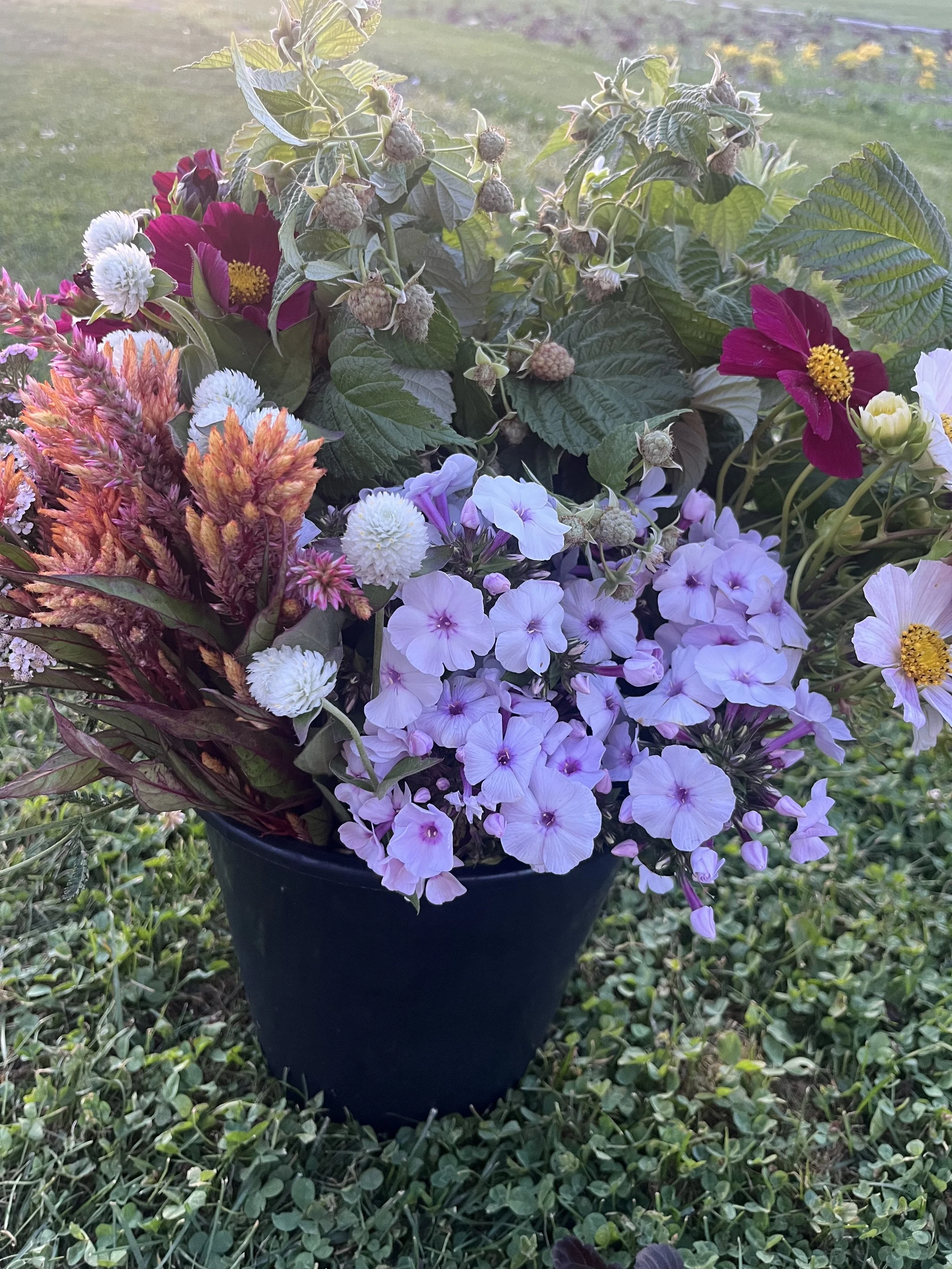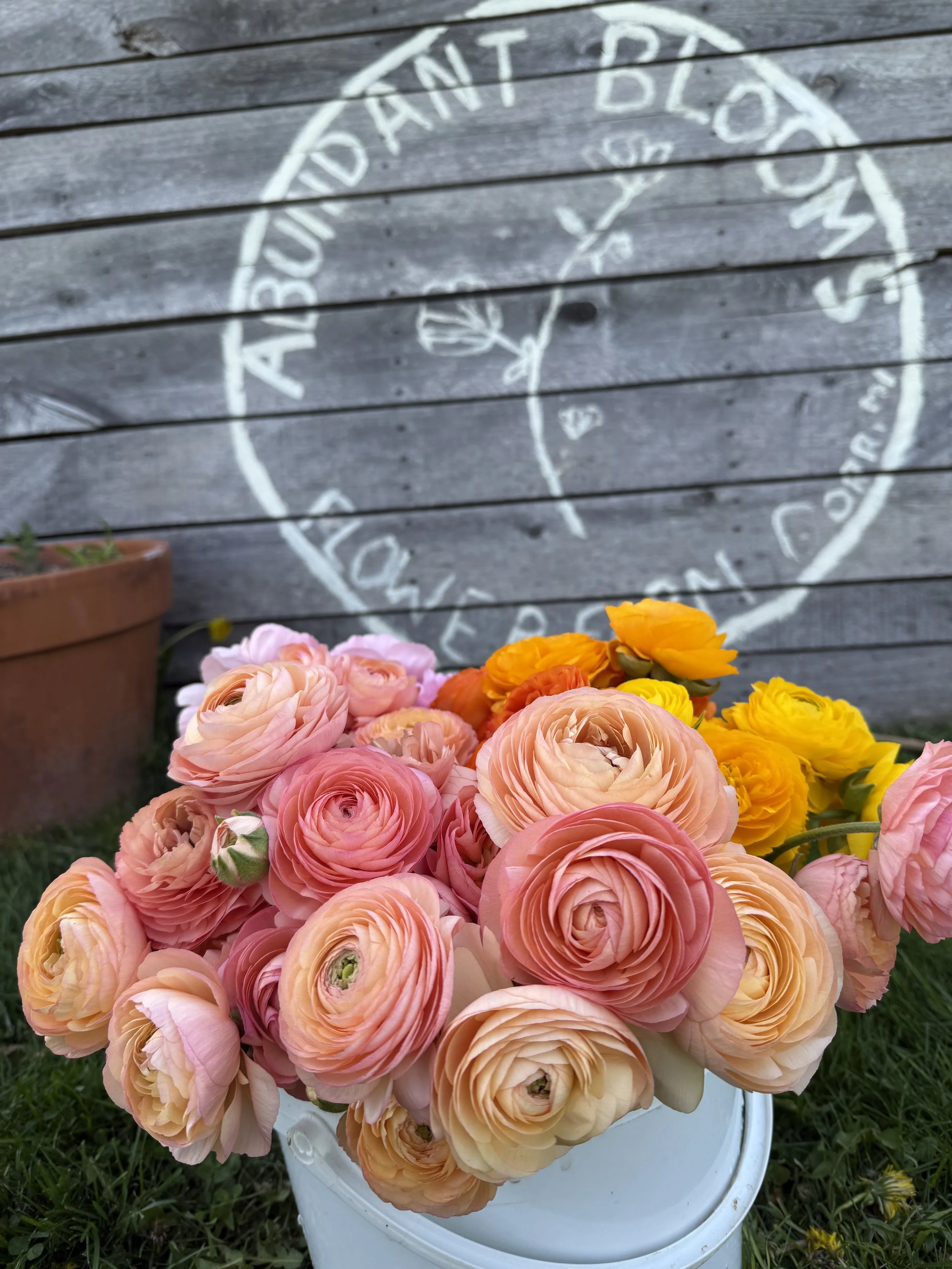 Each bucket includes a beautiful mix of seasonal flowers grown here at Abundant Blooms, so that you can create stunning arrangements for your event.